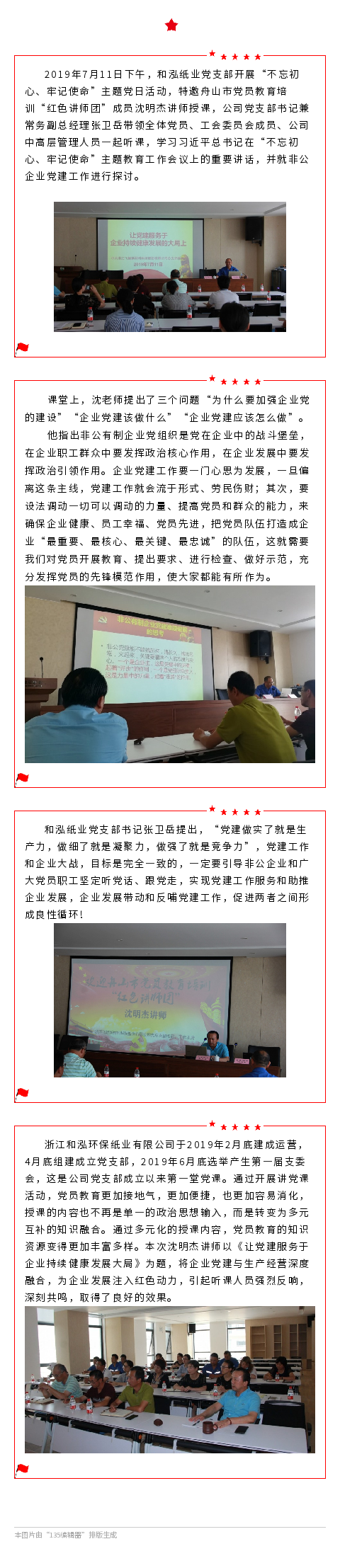 听红色讲师讲党课 和泓纸业党支部开展主题党日活动