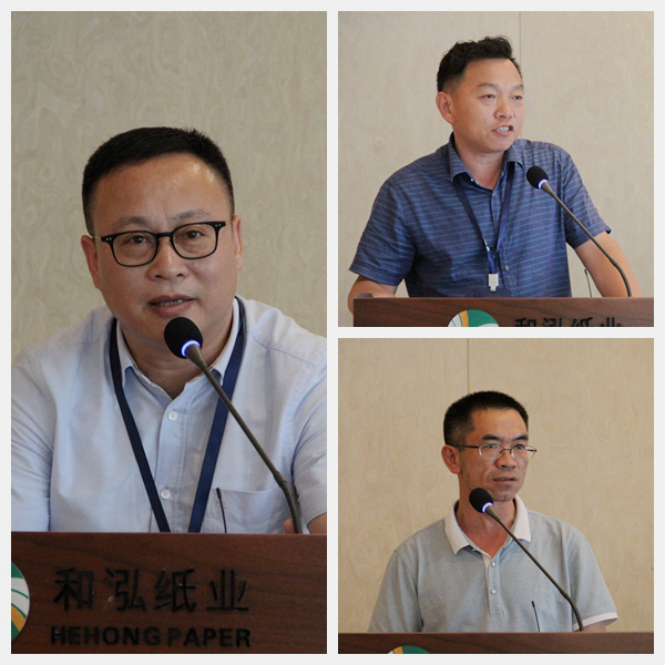 会上,董事长谢海常宣读了公司高层职务任免文件。新任公司高层管理人员总经理兼和泓纸业印度科技有限公司总经理、和泓贸易澳门有限公司(舟山和泓贸易公司)总经理应红波,副总经理兼和泓环保纸业有限公司(舟山)基地总经理邹金艳,和泓纸业印度科技有限公司生产副总经理兼和泓环保纸业有限公司(舟山)基地总工程师、生产技术部经理李廷盛依次进行就职发言。