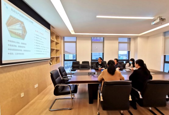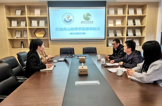 12月1日,舟山技师学院校企合作中心副主任傅士伟,工学部部长徐世东等一行3人莅临我司,与公司综合部经理林燕、副经理顾津萍进行校企合作交流。