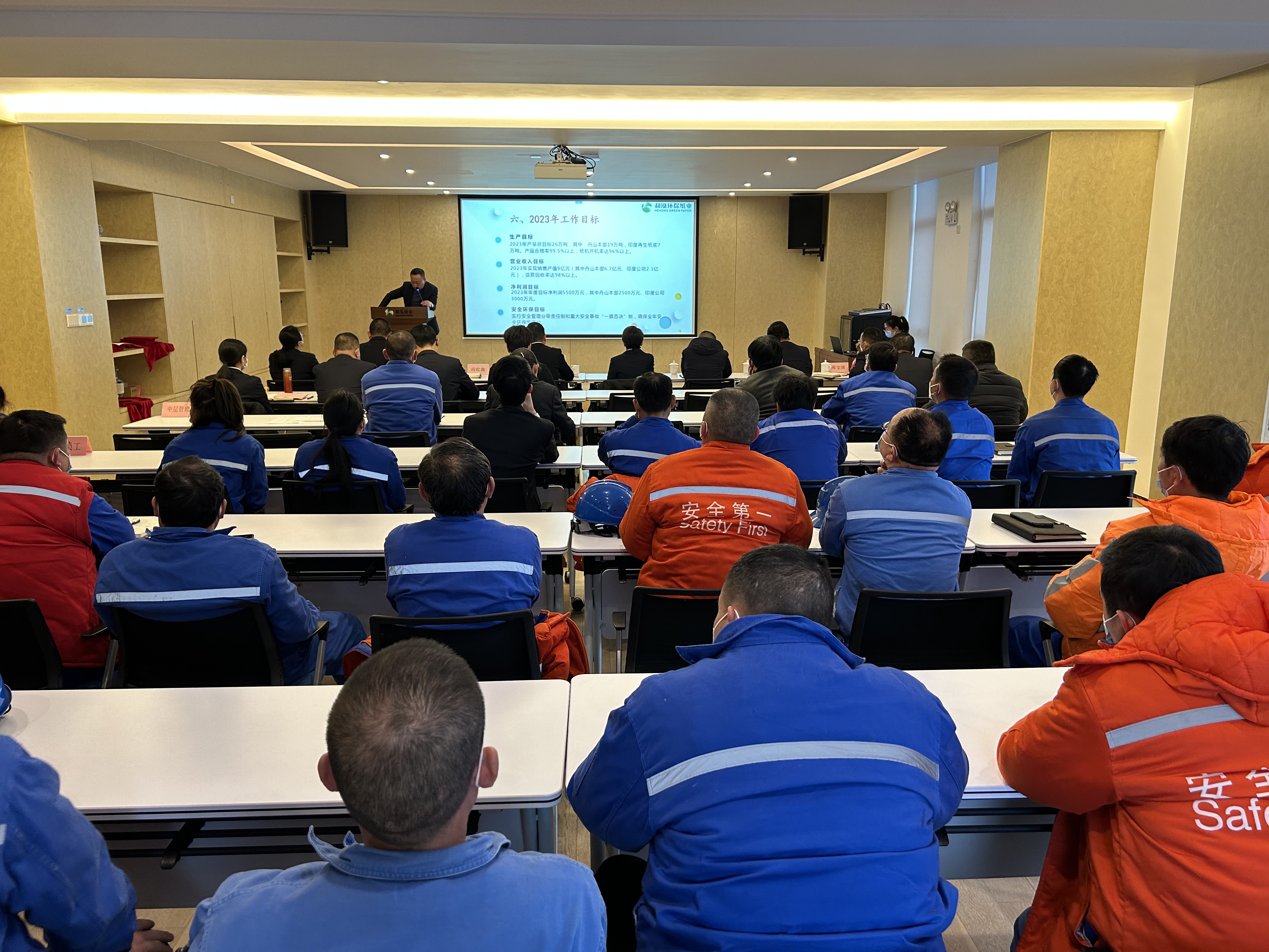 踔厉奋发,焕新起航。为总结2022年度工作完成情况,表彰先进并部署2023年度目标任务,1月17日下午,和泓纸业召开“2022年度工作总结暨2023年动员大会”,集团总裁林刚、公司总经理应红波、总工程师李茂龙等人员参加了会议。