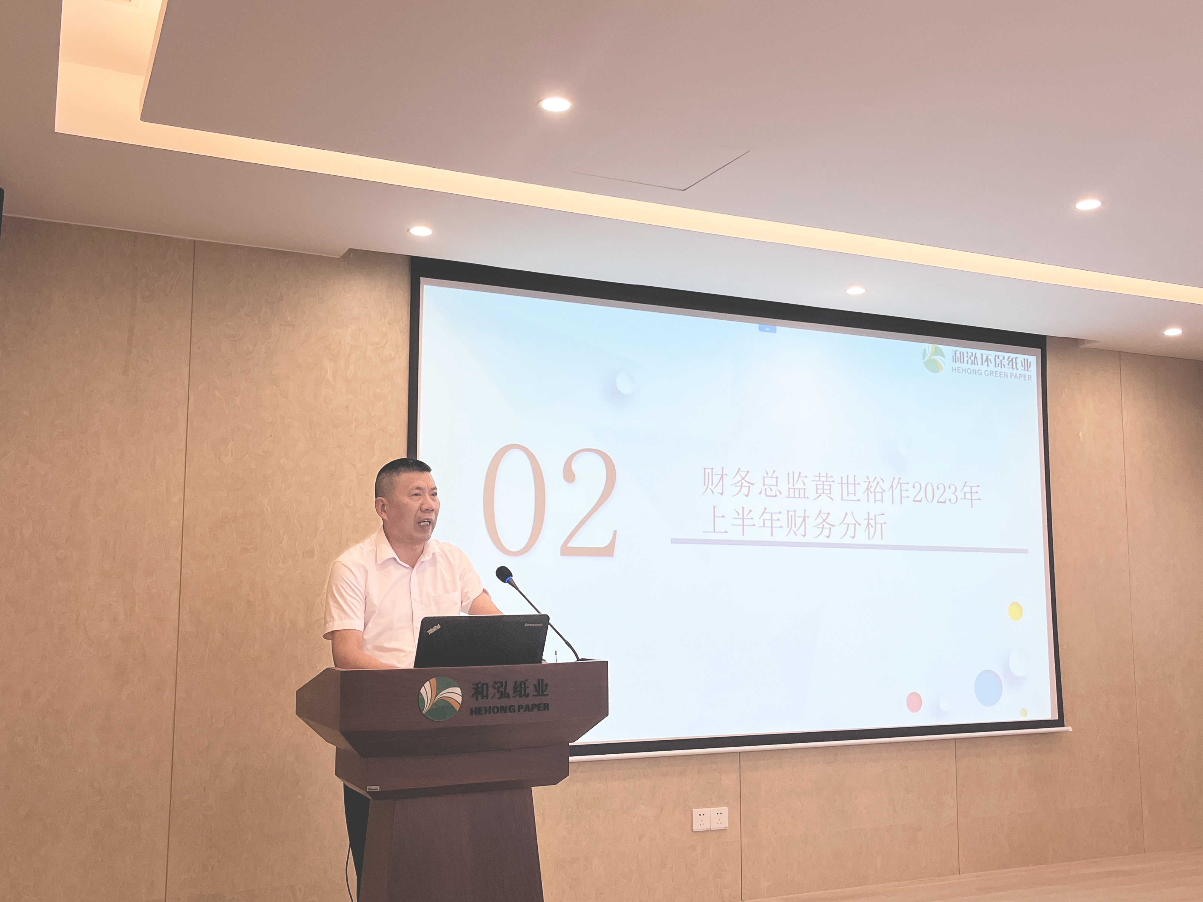 公司财务总监黄世裕作了2023年上半年财务报告,详细分析了上半年公司各项费用支出、经营效益等情况,要求各部门从生产改革、营销策略、费用支出等方面进一步落实成本管控,积极推动企业精细化管理,发挥员工工作能动性,提高工作效率。