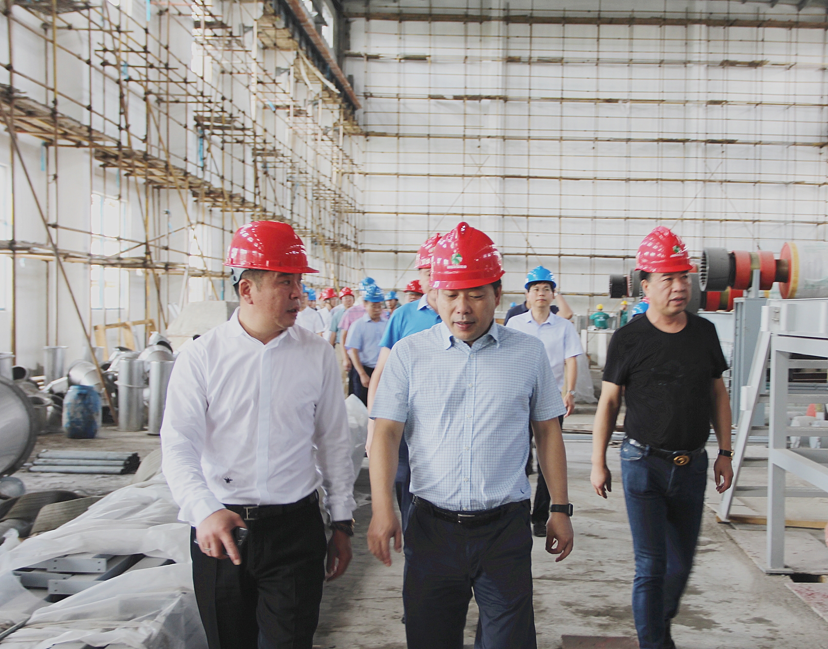毛铁年一行首先来到项目工地,参观正在建设中的和泓环保纸业年产20万吨高强瓦楞原纸项目造纸、制浆等一线生产车间,实地考察了解企业项目建设进度。
