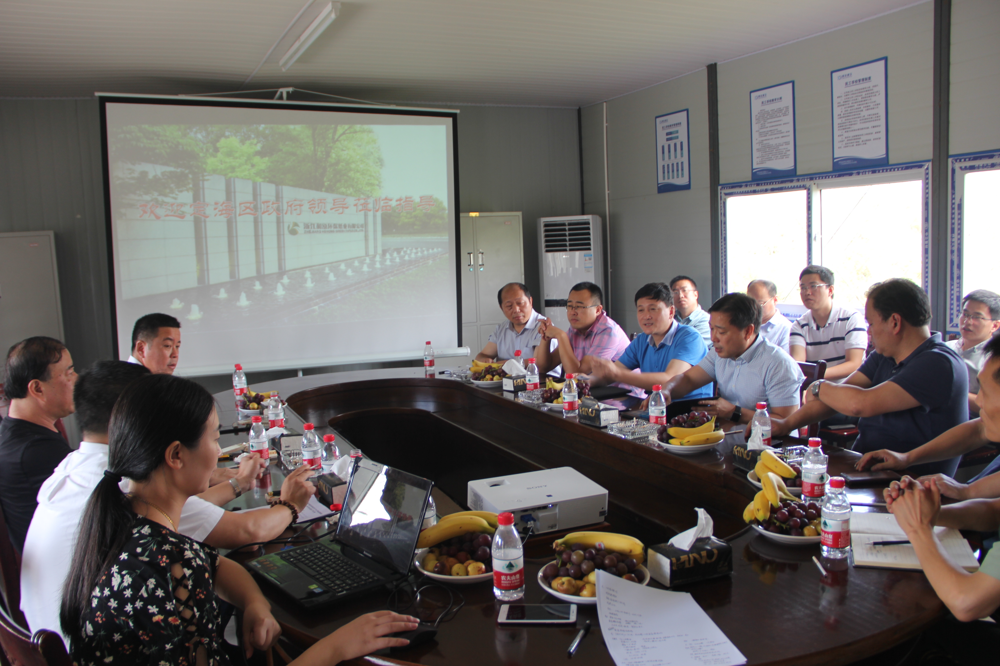 8月15日上午,舟山市定海区委常委、区政府常务副区长毛铁年率区委区政府发改、土管、环保、消防、安全等相关部门负责人一行来到和泓环保纸业进行项目视察调研,集团董事长李善丰、总裁谢海常、副总裁应红波等热情接待来访领导,陪同视察项目工地建设,并汇报项目建设进度。